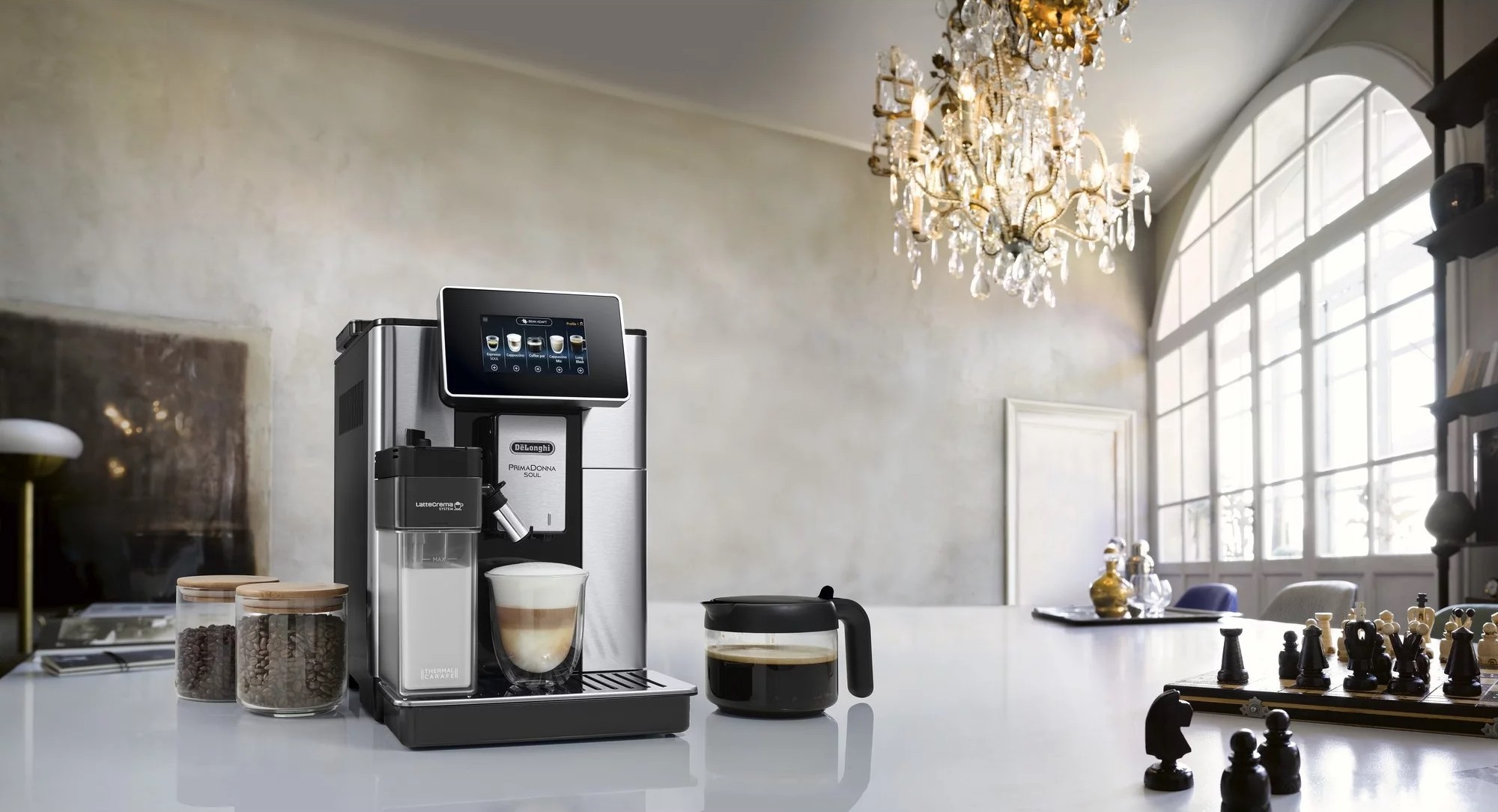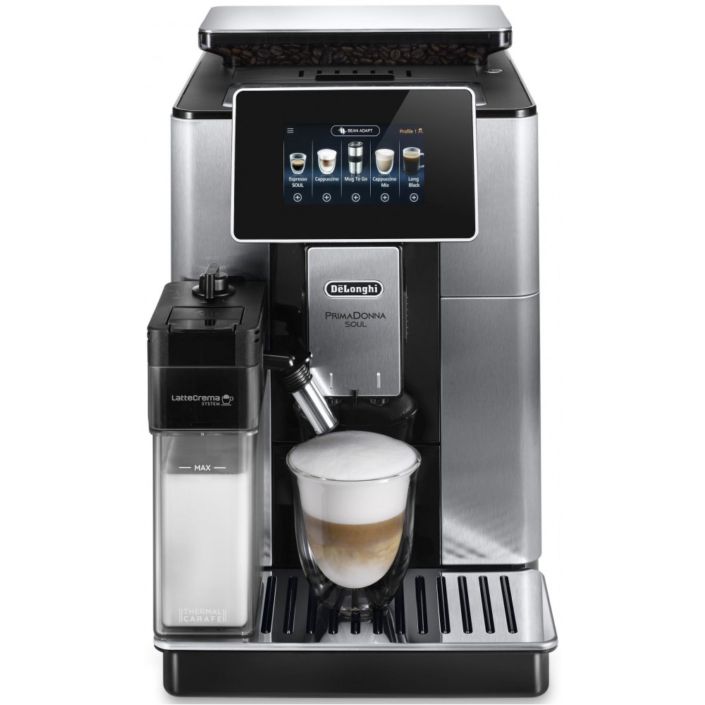 Кавовий автомат виробника De'longhi влітку 2022 року поповнив фірмову лінійку PrimaDonna. В рамках цієї серії представлені високотехнологічні рішення преміального сегмента з багатими функціональними можливостями. Відповідний статус моделі підтверджує великий сенсорний дисплей і можливість управління зі смартфона (додаток CoffeeLink), додаткова термоізоляція резервуара для молока, що містить 0.5 літра, наявність скляного кавника в комплекті поставки (спеціально для режиму «графин кави»), а також велика кількість автоматичних програм (всього 21 штука). Серед останніх є всі найпопулярніші рецепти, а також багато що рідко зустрічаються, начебто холодної кави, кортадо і т. д.