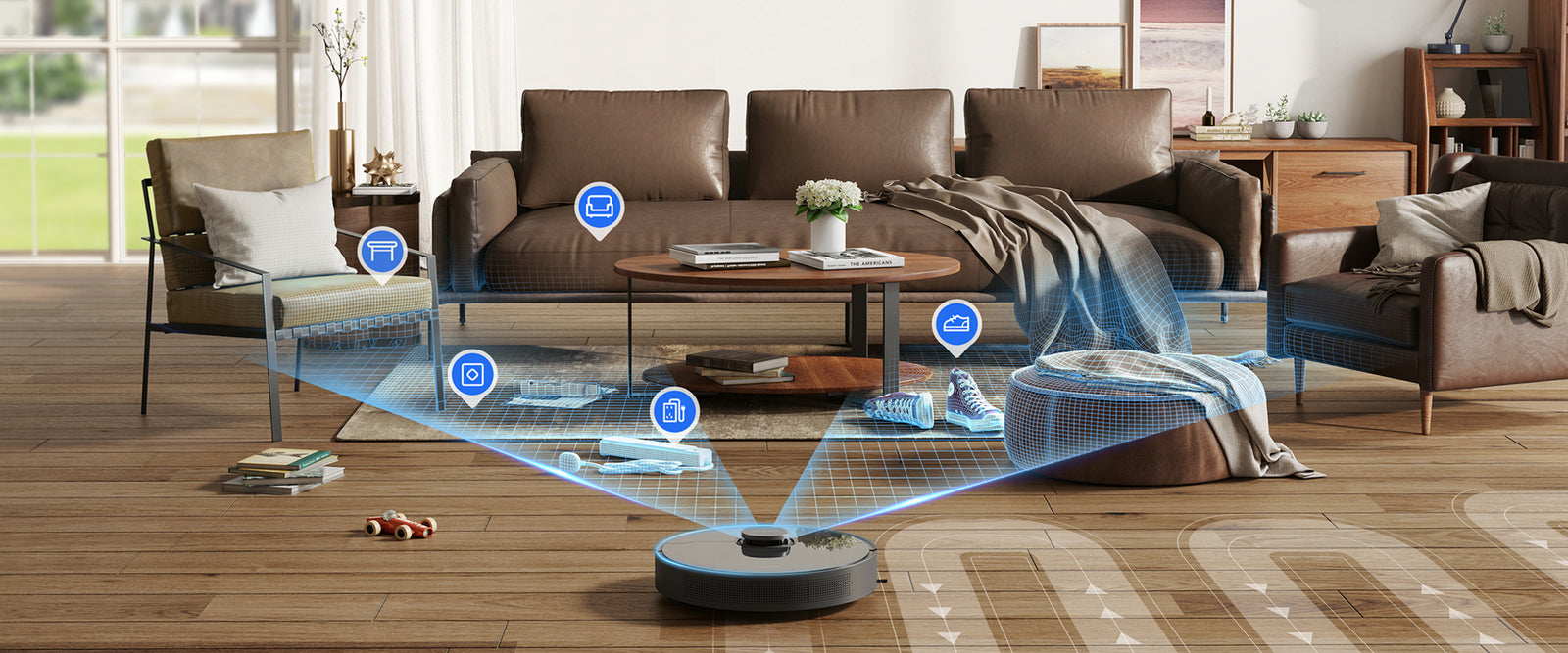 Завдяки удосконаленому штучному інтелекту та LDS для обходу перешкод ви можете вільні руки підхід до збирання. Штучний інтелект точно визначає перешкоди та уникає їх, визначає приміщення, щоб рекомендувати стратегії прибирання, і швидко створює карти вашого будинку для забезпечення ефективного прибирання, яке не пропускає жодної цятки.