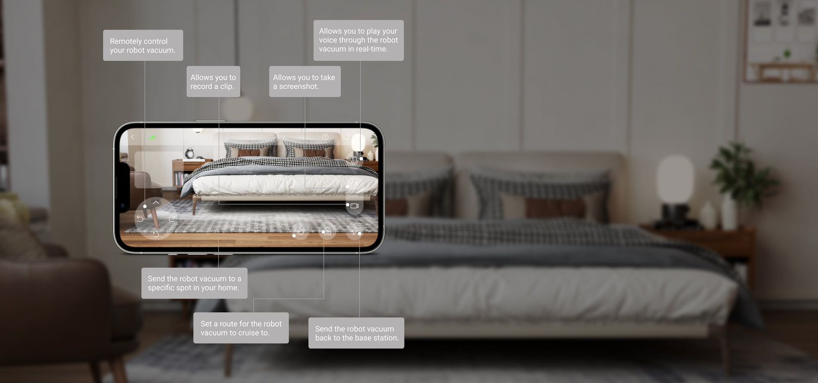 Дистанційне відеоспостереження дозволяє перевіряти стан вашого будинку, ваших домашніх тварин і ваших дітей, де б ви не знаходилися. Отримайте око робота огляньте свій будинок з абсолютно нової точки зору або перевірте місця під меблями лише кількома натисканнями на свій телефон.