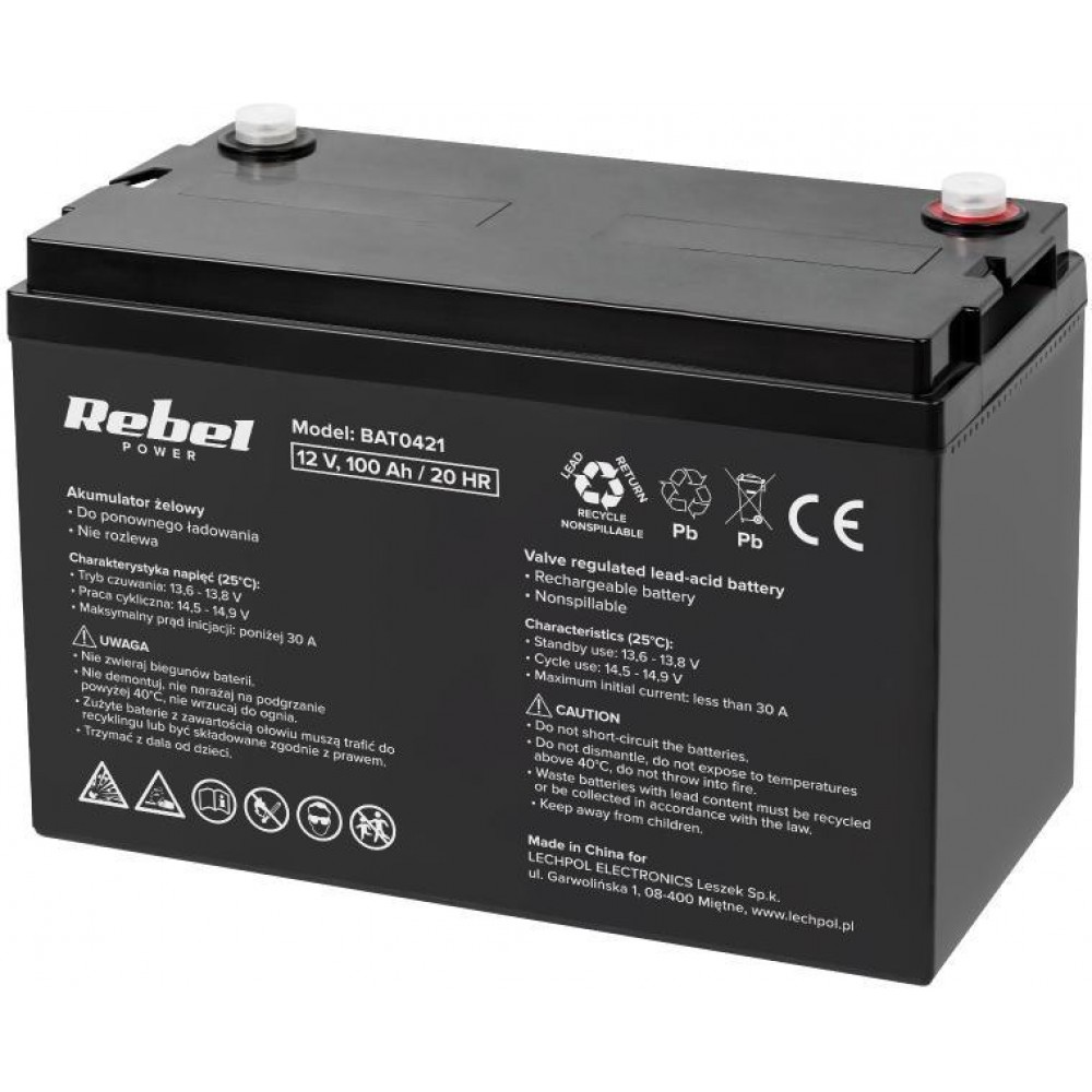 Акумулятор для ДБЖ/інвертора Rebel power 12V 100Ah (BAT0421)