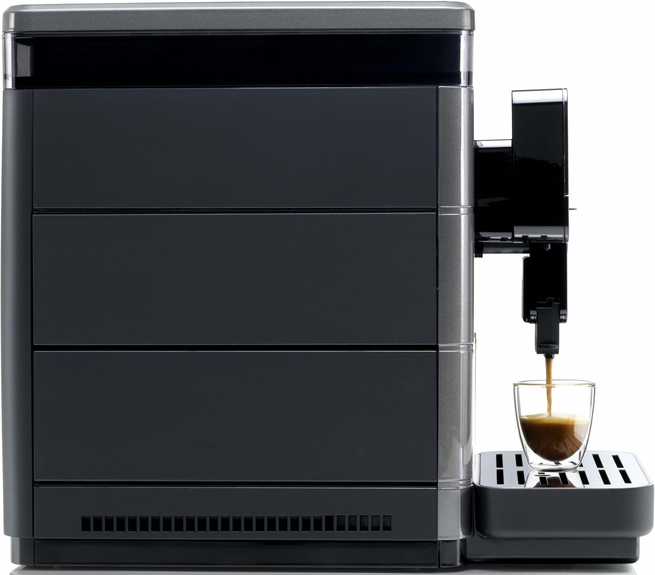 Великий обсяг кавомолки і контейнера для збору кавовій гущі. Незалежна система подачі пари і гарячої води. Капучинатор ліворуч або праворуч. Кольоровий дисплей. Установка чашок висотою до 16 див. USB-порт для оновлення вбудованих програм.