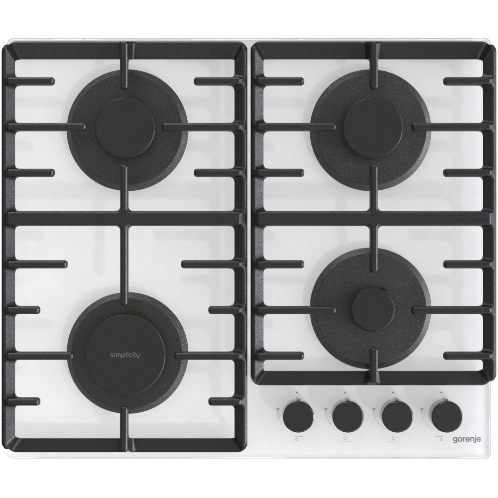 Незалежна газова варильна поверхня з просторим підставою з високоміцного загартованого скла, солідними чавунним гратами і класичної 4-конфорочної компоновкою з фронтальним розташуванням панелі управління. Виробником позиціонується як продукт середньої цінової категорії з популярного сімейства Gorenje Simplicity зразка 2020 року. Обладнана зручною системою автоматичного підпалу, яка вбудована в поворотні ручки газових кранів (достатньо просто натиснути на відповідний регулятор конфорки і повернути його до потрібної позначки).